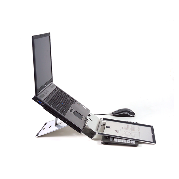 Der Ergo-Q 260 Laptopständer ist mobiler Laptopständer und integrierter Dokumentenhalter in einem. Dieser Notebook-Ständer ist sehr leicht, vollständig einklappbar und passt in jede Laptoptasche. Zusammengefaltet misst er nur 7 mm.