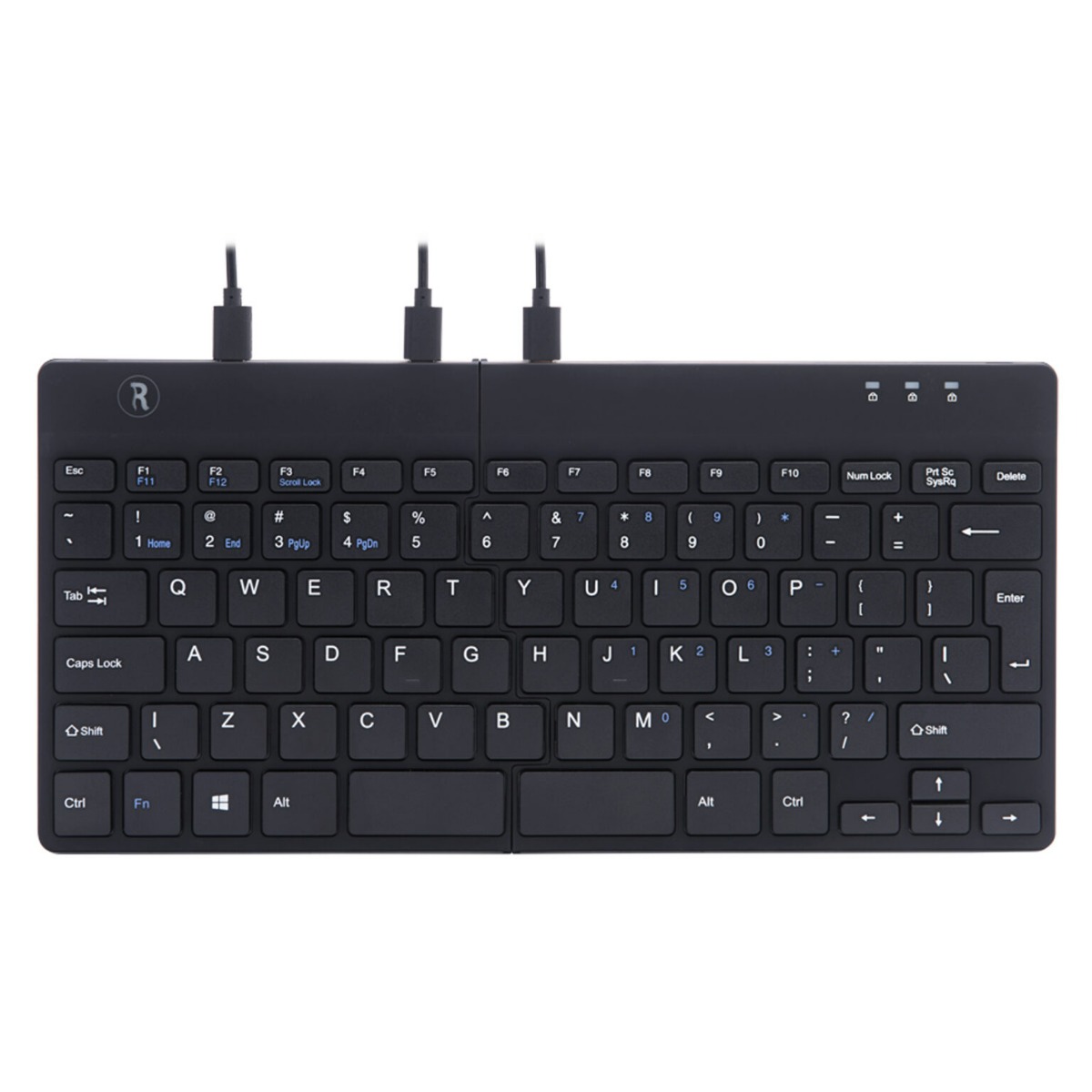 Eine geteilte Tastatur unterstützt dich dabei, in einer natürlichen und entspannten Haltung zu tippen. Anstatt deine Handgelenke zu verdrehen und die Schultern nach innen zu ziehen, bleiben deine Hände gerade und deine Arme auf Schulterbreite. Das reduziert die Muskelbelastung in Händen, Handgelenken, Schultern und Nacken. Besonders bei langem oder intensivem Arbeiten am Computer bietet diese Tastaturform echte Vorteile.