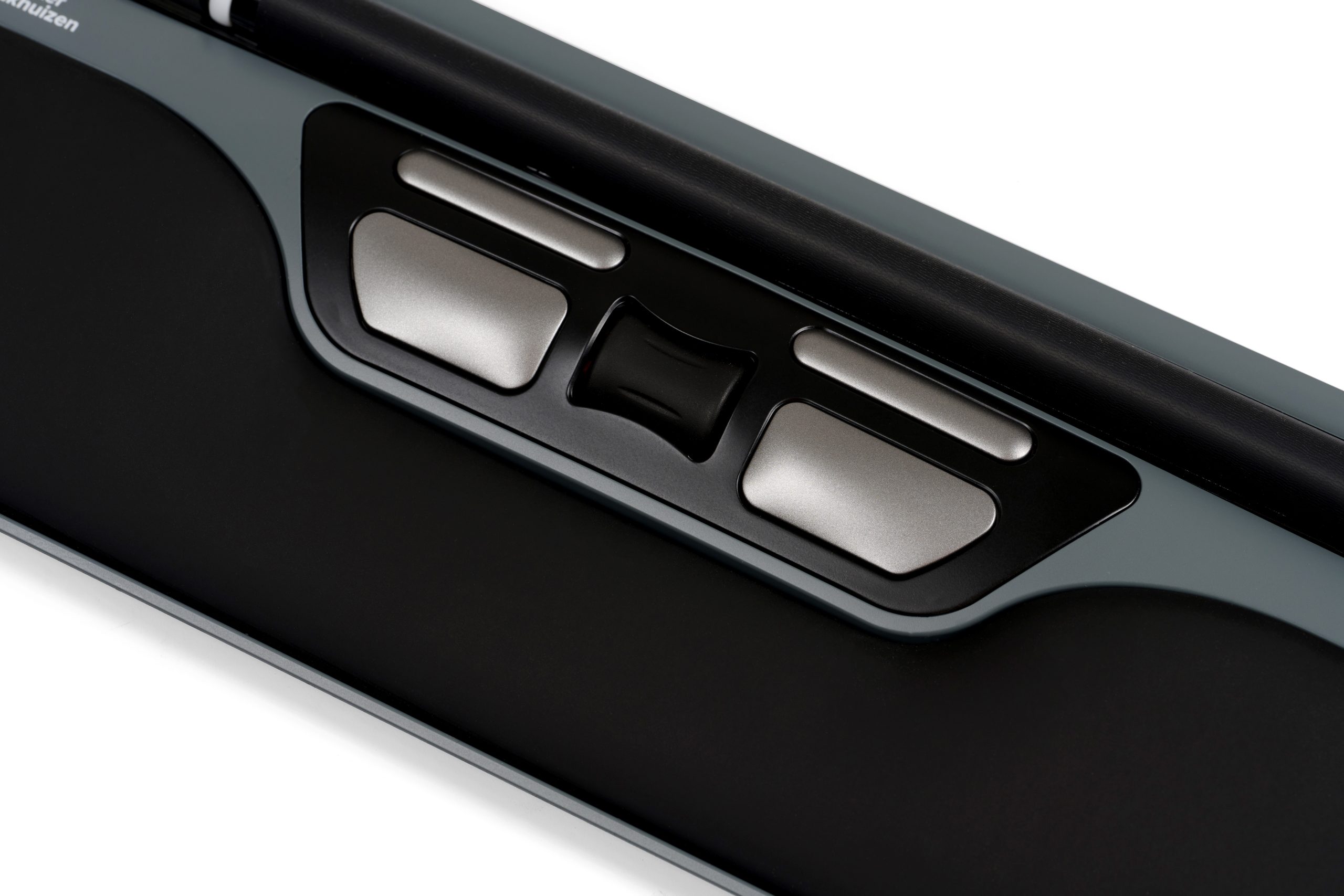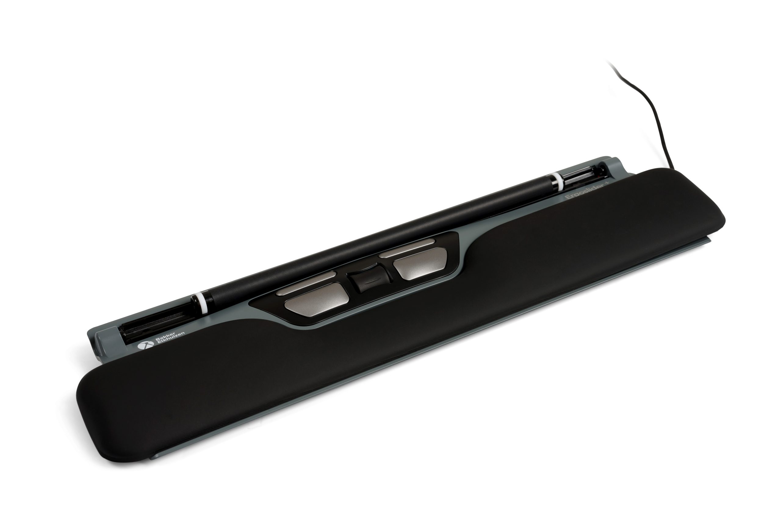 Der ErgoSlider Plus verfügt über eine klickbare Rollerbar, die Sie mit Ihren Fingerspitzen oder Daumen steuern. Große Armbewegungen entfallen. Ihre Hände ruhen entspannt auf der abnehmbaren Handballenauflage, während Sie die Maus präzise bedienen. Egal ob Links- oder Rechtshänder – diese Maus passt sich an.