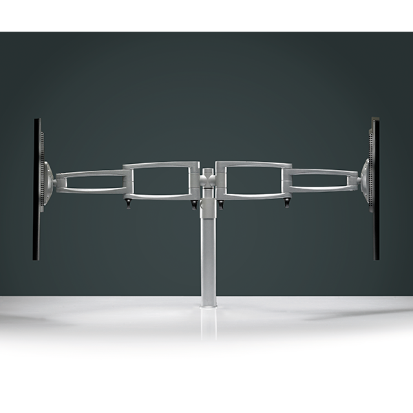 Der Zoom 102 Twin zeichnet sich aus als Monitorarm mit ergonomischen und platzsparenden Eigenschaften für zwei Bildschirme, die sowohl „Seite an Seite“, als auch „Rücken an Rücken“ positioniert werden können.